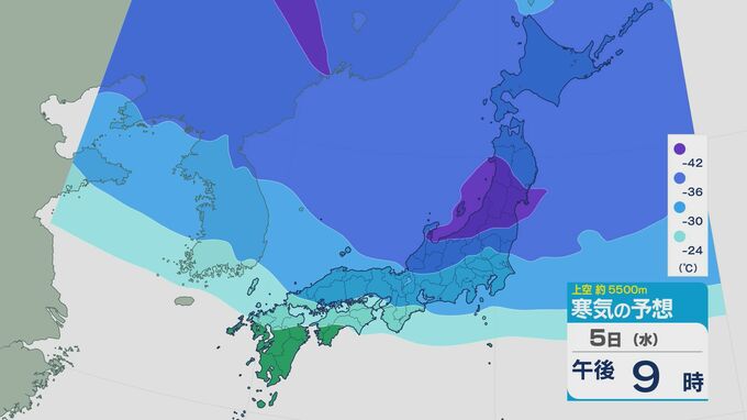 【大雪情報】この冬一番の“最強寒波”が到来 上空約5500メートルで-42度以下にも 6日(木)にかけ西日本から北日本の日本海側で大雪に 大荒れの天気続くおそれ 雪と風シミュレーション 北陸放送 2025年2月4日(火) 09:55 上空およそ5500メートルでは、5日(水)は東日本や北日本-42度以下にまでなるでしょう。 寒気はかなり強く、地上に近い上空およそ1500メートルでは、4日と5日は西日本から北日本にかけて-12度程度と低く、雪をもたらす気温です。