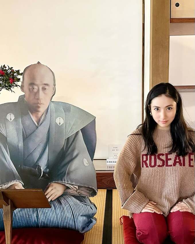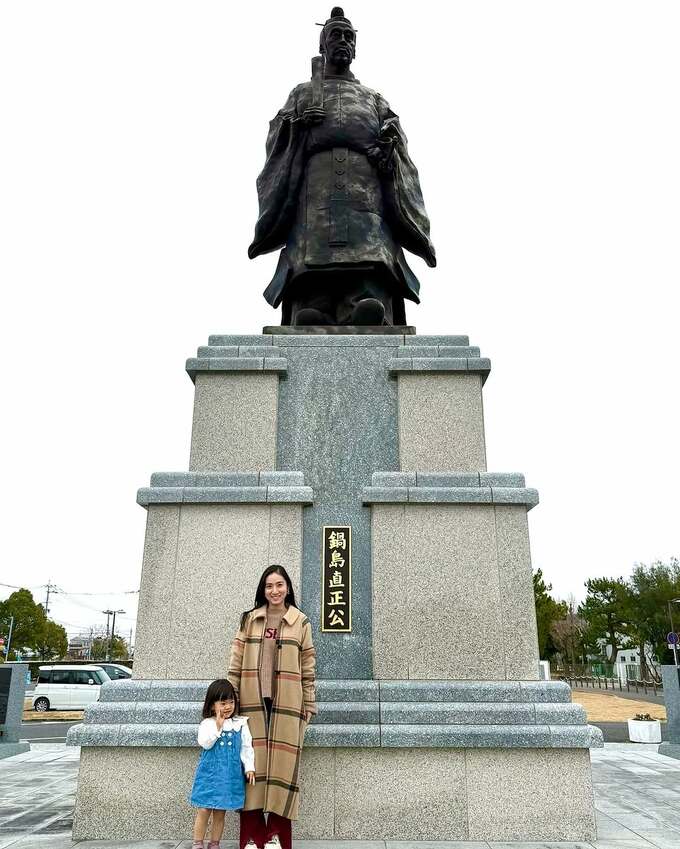続けて「大昔の鍋島おじいちゃんと自撮りしたり(当時こんなことしてたら切腹だよねw親戚だからいいのか⁉︎笑)、歴史に思いを馳せながら、たくさん鍋島を肌で感じることが出来ました。」と綴ると、現地で撮影した写真をアップしました。