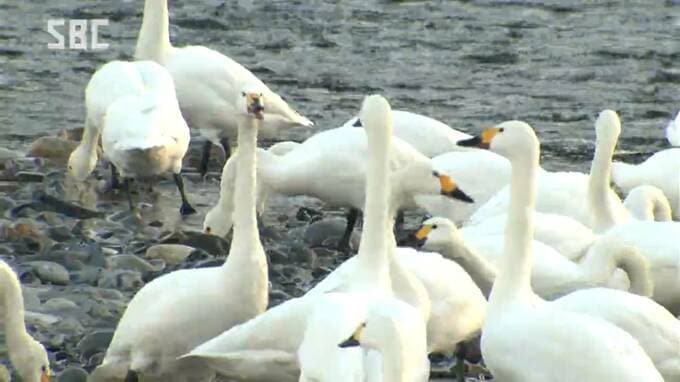 厳しい寒さが続く中、安曇野ではコハクチョウの飛来がピークを迎えています。コハクチョウの越冬地として知られる安曇野市の犀川白鳥湖では、4日朝、およそ140羽が確認されました。朝焼けに染まる水面を進みながら…
