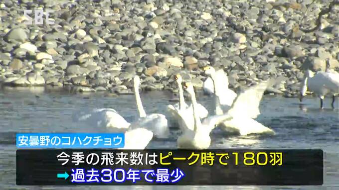 「アルプス白鳥の会」によりますと、今シーズンの飛来数はピーク時でも180羽と例年になく少ないということです。