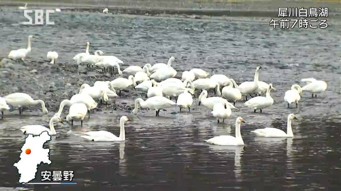 厳しい寒さが続く中、安曇野ではコハクチョウの飛来がピークを迎えています。