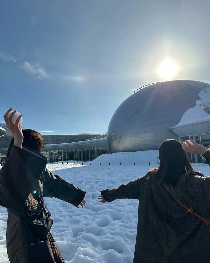 一面、銀世界となった博物館の屋外で、雪を投げる写真も投稿しています。