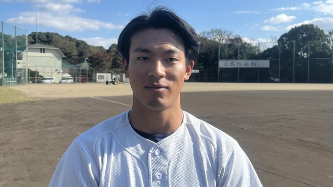 関大北陽高(大阪)~近大。高3夏の大阪府大会ベスト4。近大では1年秋からベンチ入り。リーグベストナイン4回。大学3年夏、大学日本代表に選出。50mは6秒0。目標とするプロ野球選手は吉川尚輝(巨人)。