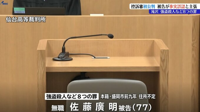 強盗殺人など、8つの罪に問われているのは本籍・盛岡市前九年、住所不定・無職の佐藤廣明被告77歳です。