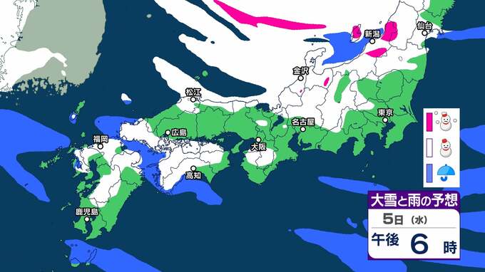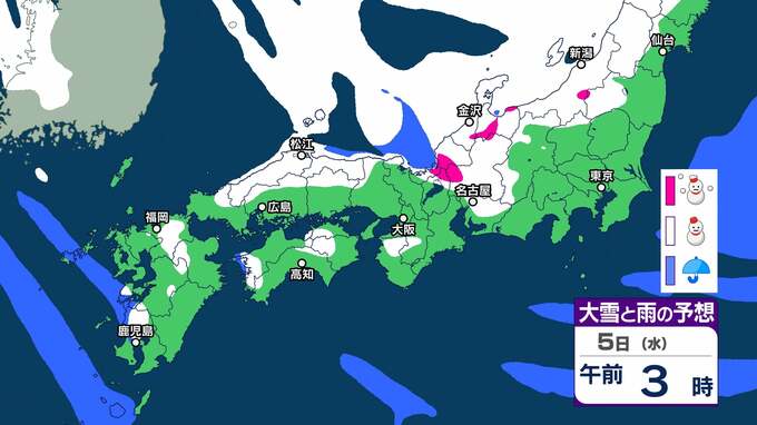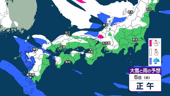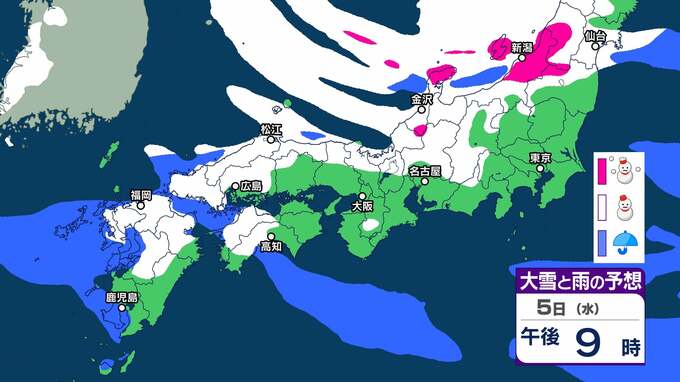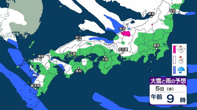 【大雪情報】西日本では大雪や暴風雪、高波に警戒 7日夕方まで72時間の予想降雪量は山陽・山陰の山地で100㎝ 5日未明から昼前にかけ鹿児島県でも警報級の大雪となるおそれ チューリップテレビ 2025年2月4日(火) 17:30 国内 暮らし・マネー 5日(水)大雪と雨のシミュレーション