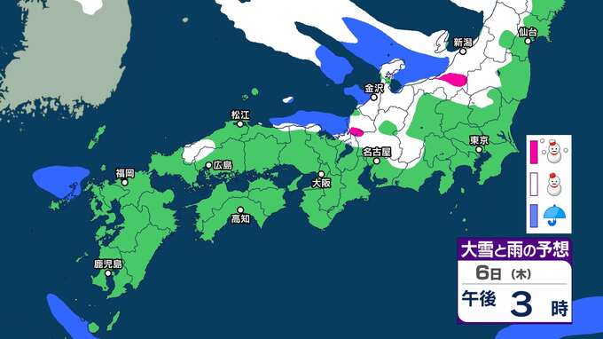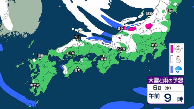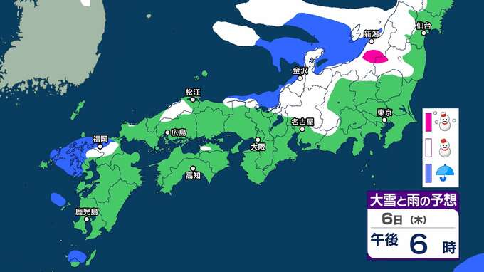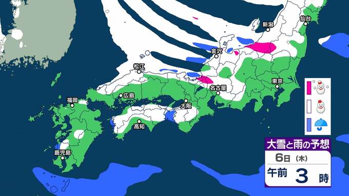 【大雪情報】西日本では大雪や暴風雪、高波に警戒 7日夕方まで72時間の予想降雪量は山陽・山陰の山地で100㎝ 5日未明から昼前にかけ鹿児島県でも警報級の大雪となるおそれ チューリップテレビ 2025年2月4日(火) 17:30 国内 暮らし・マネー 6日(木)大雪と雨のシミュレーション