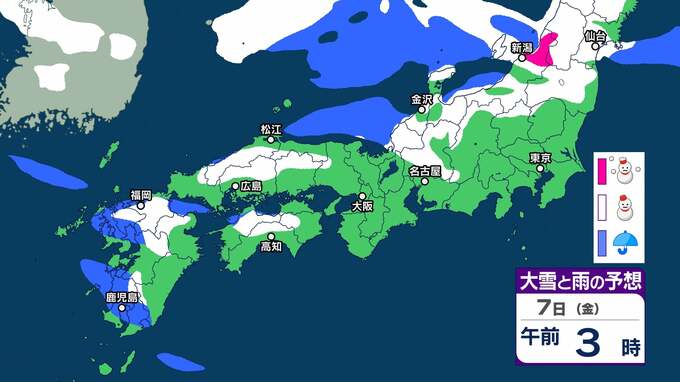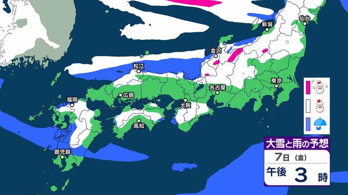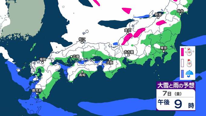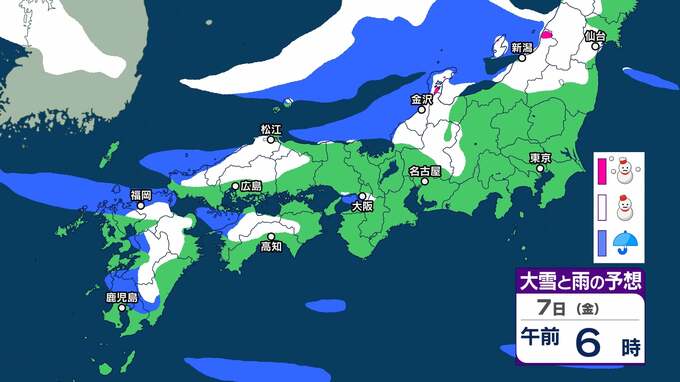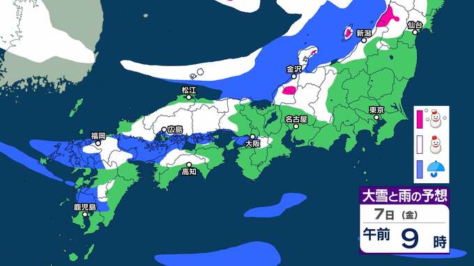 【大雪情報】西日本では大雪や暴風雪、高波に警戒 7日夕方まで72時間の予想降雪量は山陽・山陰の山地で100㎝ 5日未明から昼前にかけ鹿児島県でも警報級の大雪となるおそれ チューリップテレビ 2025年2月4日(火) 17:30 国内 暮らし・マネー 7日(金)大雪と雨のシミュレーション