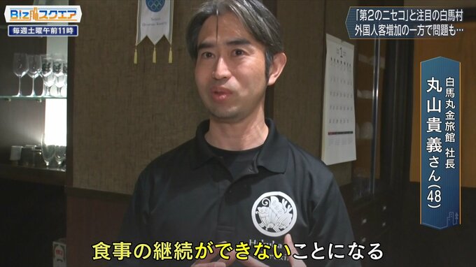 こうした問題以外にも白馬村が直面している課題がある。白馬丸金旅館の社長である丸山貴義さんは「この辺の宿は小さく、家族経営が多い。世代交代で帰ってきた息子やその妻が食事を用意することができればいいが、そうは簡単にいかない。食事の継続ができないことになる」と懸念を話す。オーナーの高齢化や人手不足による、食事を提供できる宿泊施設の減少。現在は村のあちこちにキッチンカーが出店している。牛丼はソールドアウト。価格は2500円と高めだが、それでも結構売れているという。