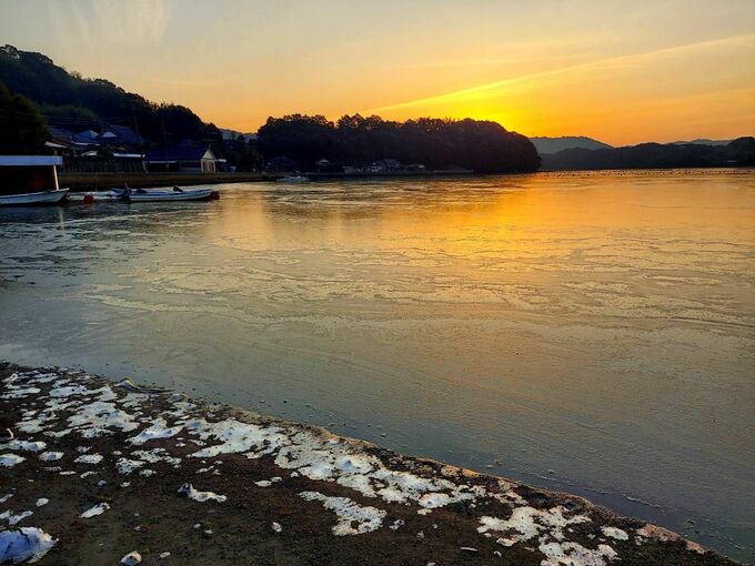 波も風もない穏やかな日に、放射冷却で厳しい冷え込みが重なるとみられるという貴重な光景です。