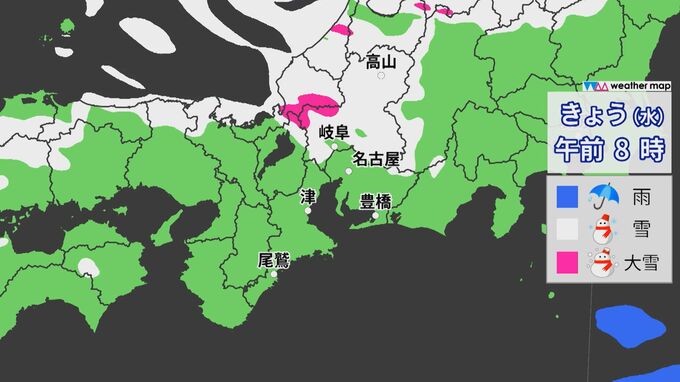 現在、岐阜県高山市、白川村、郡上市、関市、本巣市、揖斐川町に「大雪警報」が出ています。