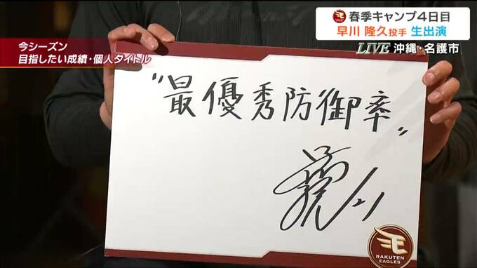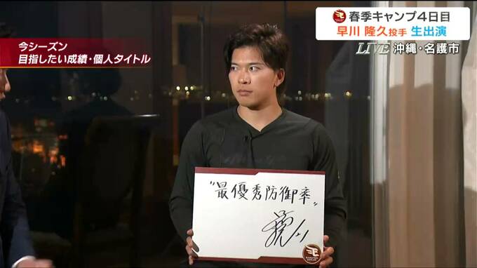 開幕投手はどうなるのか?非常に楽しみですけれども、最後になります。早川投手の今シーズンの目標とする成績を、フリップに書いていただきました。見せていただいてもよろしいですか。