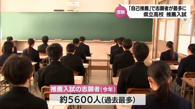 宮崎県内すべての県立高校で、5日、推薦入試が行われました。5日は、全日制と定時制のあわせて36校で推薦入試が行われ、このうち、宮崎西高校では、午前9時半から試験が始まりました。宮崎西高校の理数科は、志願…