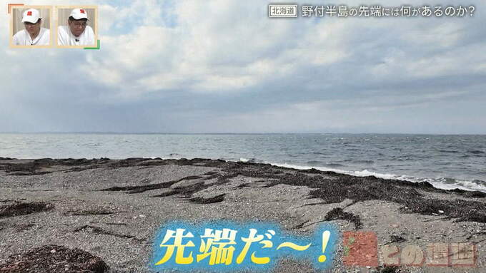2人はいよいよ最先端へ。歩くこと1時間。ついに野付半島の最先端に到着。