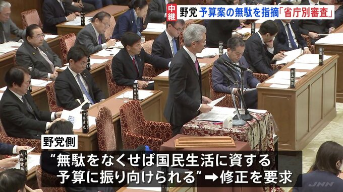 国会では衆議院予算委員会で政府の予算案を項目ごとにチェックする「省庁別審査」が初めて開かれています。国会記者会館から中継です。野党側は予算案には無駄があると指摘し、各党が重視する政策の実現に向けた財…