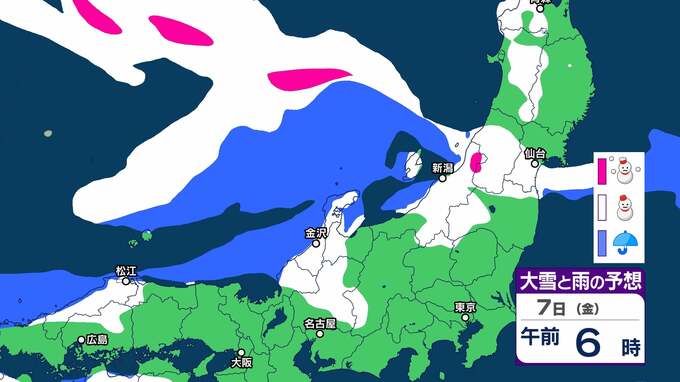 【最強最長寒波】北陸・東北中心にさらに積雪増加 大雪災害に警戒を 寒波は9日頃まで【雪と雨のシミュレーション】 チューリップテレビ 2025年2月5日(水) 12:52 国内 暮らし・マネー 7日(金)雪と雨のシミュレーション