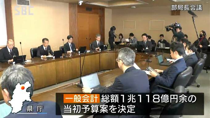 県は5日の部局長会議で、一般会計の総額で1兆118億円余りの新年度当初予算案を決めました。