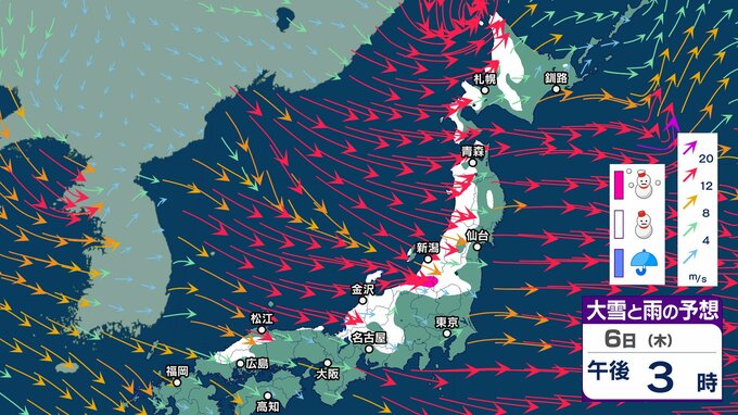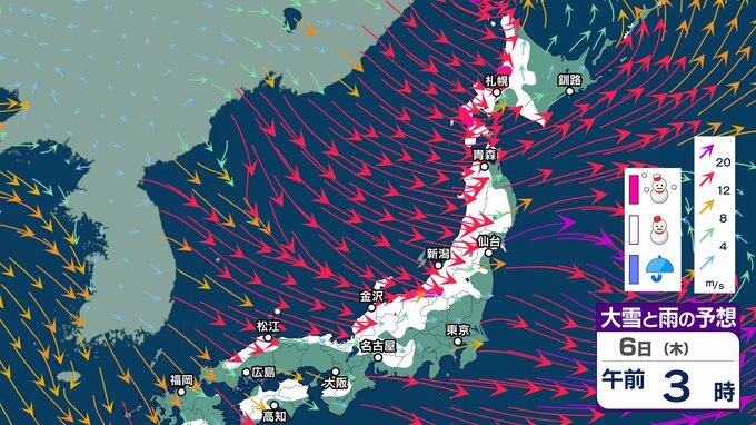 “嵐の使者” 最強寒波は9日頃まで…東北・北陸中心にさらに積雪増へ【2週間天気】全国的に北よりの風が強く体感 “さらに寒い”【大雪と雨と風のシミュレーション】大雪災害、交通障害、水道凍結に注意を チューリップテレビ 2025年2月5日(水) 15:45 国内 暮らし・マネー 6日(木)大雪と雨と風のシミュレーション