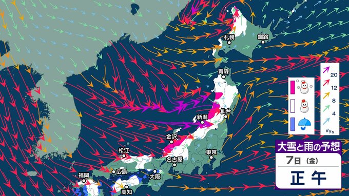 “嵐の使者” 最強寒波は9日頃まで…東北・北陸中心にさらに積雪増へ【2週間天気】全国的に北よりの風が強く体感 “さらに寒い”【大雪と雨と風のシミュレーション】大雪災害、交通障害、水道凍結に注意を チューリップテレビ 2025年2月5日(水) 15:45 国内 暮らし・マネー 7日(金)大雪と雨と風のシミュレーション