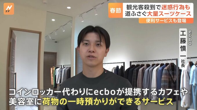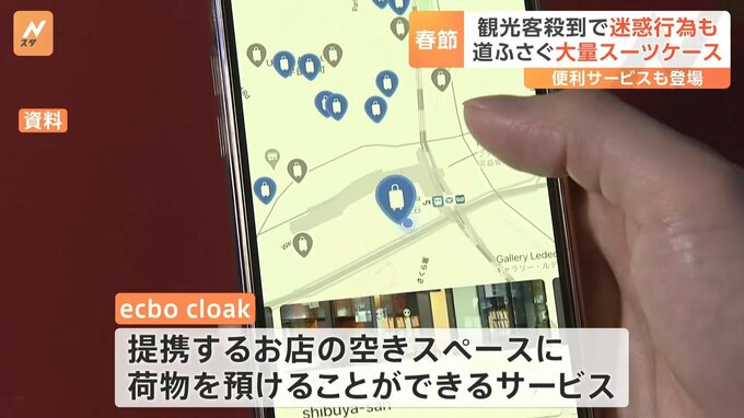 道をふさぐ大量のスーツケース…解決する便利なサービスも
