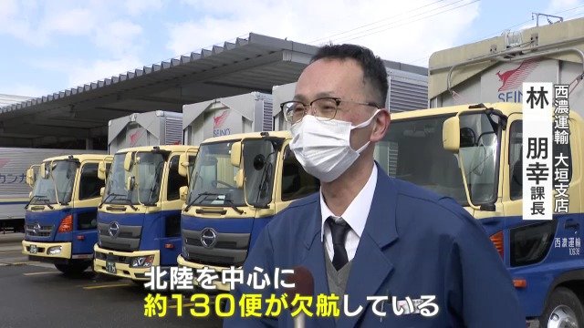 西濃運輸は全国各地に配送を行っていますが4日は、福井県のすべての発着便と新潟県の一部で配送を見合わせたということです。その数約130便です。