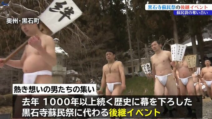 2024年、長い歴史に幕を下ろした岩手県奥州市の奇祭「黒石寺蘇民祭」に代わる催しが有志によって開かれ、下帯姿の男たちが蘇民袋を奪い合いました。