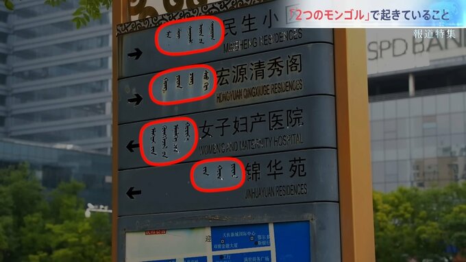 中国の内モンゴル自治区では、道路標識や看板には漢字とともにモンゴル族固有の文字・モンゴル文字が併記されている。