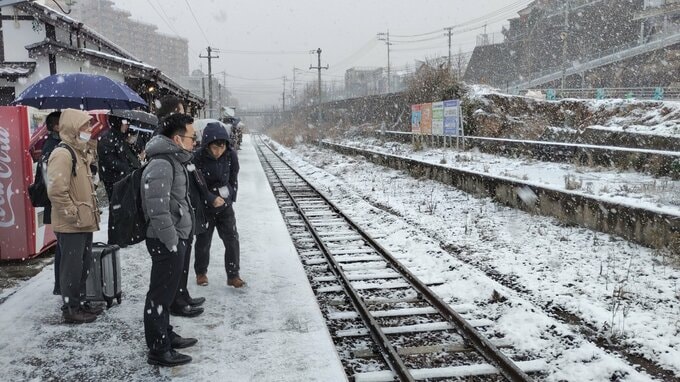 一方、県内の高速道路は、平常通り通行できるほか、県内の鉄道や路面電車も通常運行となっています。(写真:6日 7時40分ごろのJR道ノ尾駅)
