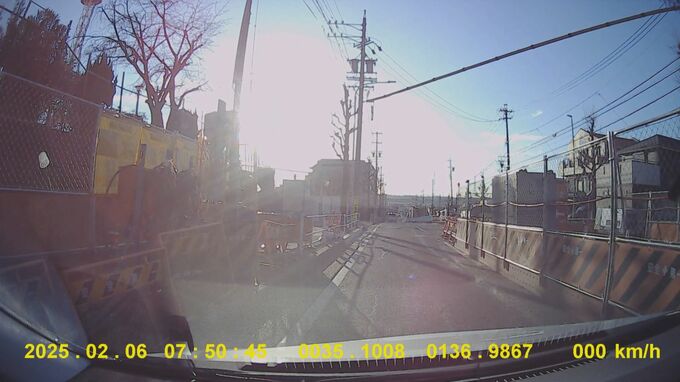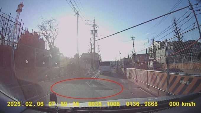 こちらは陥没した乗用車のドライブレコーダーの映像。すでに開いていた穴の上を前の車に続いてスピードを落としてゆっくりと進もうとしますが…