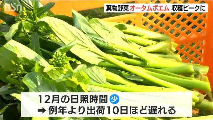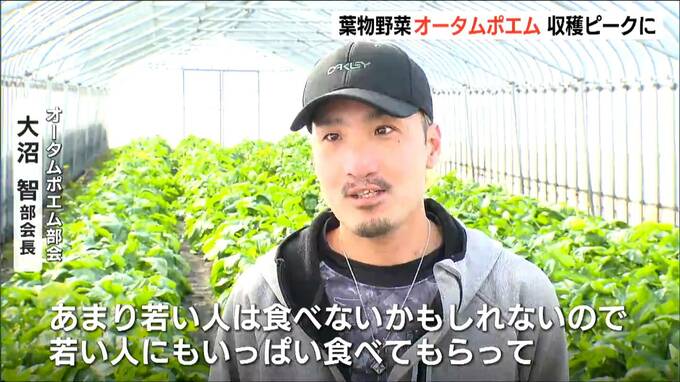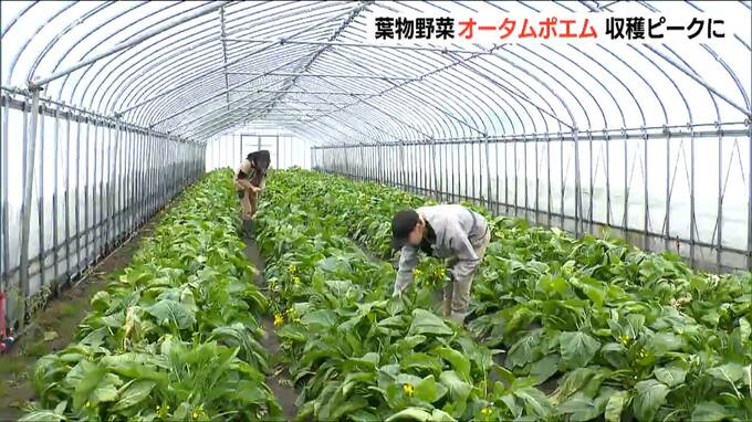 雪が積もる新発田市のビニールハウスでは、青々と大きく育った葉物野菜『オータムポエム』が収穫のピークを迎えていました。