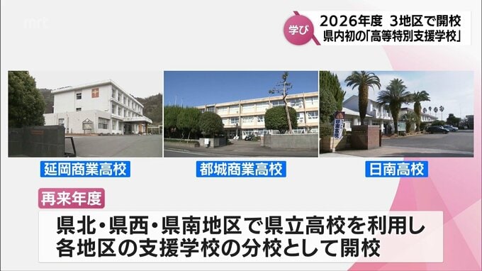 宮崎県は知的障害のある生徒の教育環境を整備しようと、2026年度、3つの地区で県内初となる「高等特別支援学校」を開校する予定です。4日、県庁で開かれた県総合教育会議では河野知事や黒木淳一郎教育長らが出席…