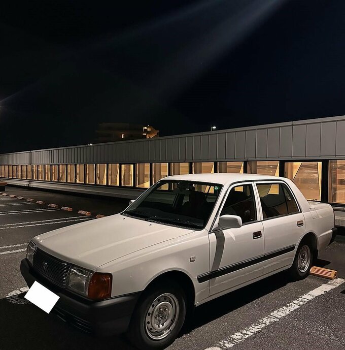 山口さんは「ショッピングモールの駐車場って、昼間停めて、暗くなって戻ったら車の見え方が変わってて楽しい」と駐車している愛車トヨタ・コンフォートの写真を投稿。