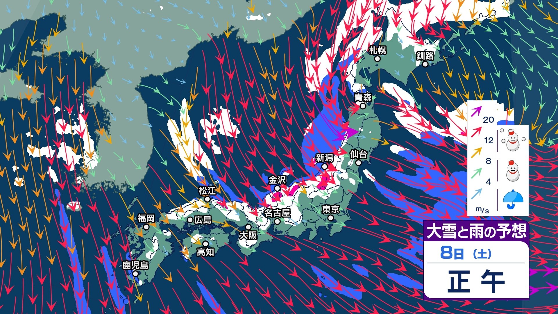 “警報級の大雪”再び…中国地方は特に7日朝~8日にかけて 四国地方は7日昼前~8日にかけて 九州北部・山口県は7日明け方から8日午前中【大雪と雨と風のシミュレーション】 チューリップテレビ 2025年2月6日(木) 17:00 国内 天気 8日(土)雪と雨と風のシミュレーション