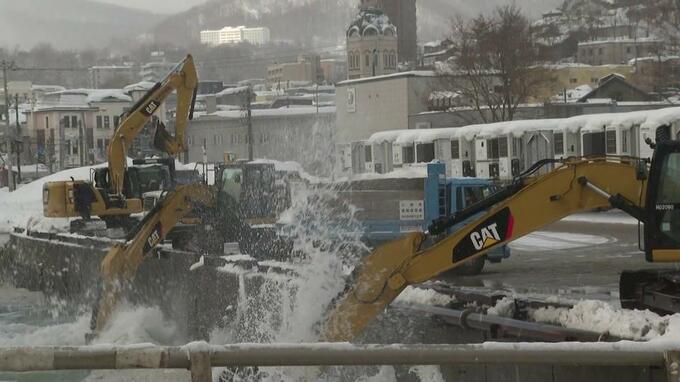 記録的な大雪に見舞われている中、北海道小樽市では豪快な雪処理作業が行われています。
