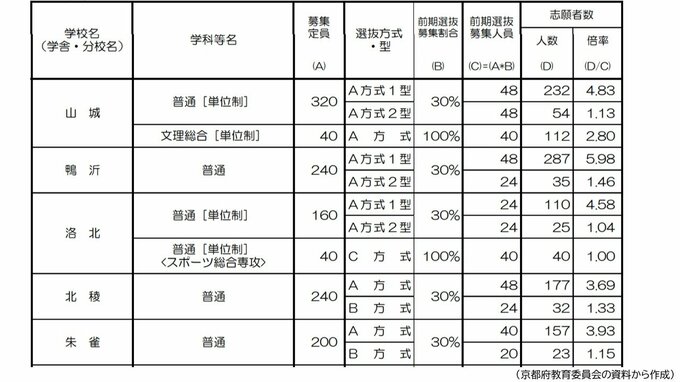京都府教育委員会は、2025年度(令和7年度)の府内の公立高校の入学者選抜・前期選抜について、2月3日から5日まで願書を受け付け、志願者数と学校ごとの倍率などを発表しました。