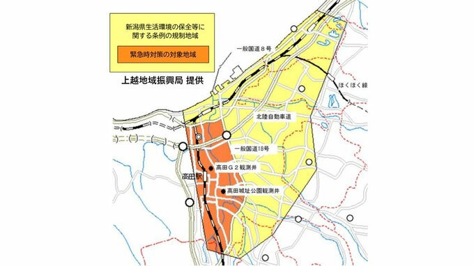 新潟県は、上越地域で地盤沈下対策用の観測用井戸の地下水位がさらに低下しているとして、4日に発令していた『地盤沈下注意報』を、6日正午に『警報』に切り替え、不必要な散水を控えて地盤沈下の進行を防止するように呼び掛けています。