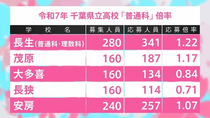 千葉県立高校入試2025 全日制普通科 志願倍率は東葛飾2.17倍、船橋1.92倍、薬園台1.68倍に【令和7年度高校受験】 TBSテレビ 2025年2月6日(木) 19:01 国内 学校別の一覧 姉崎1.46倍、木更津1.29倍