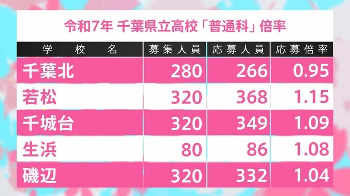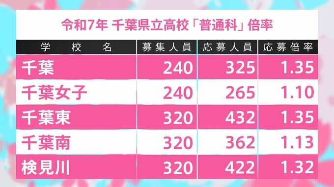 千葉県立高校入試2025 全日制普通科 志願倍率は東葛飾2.17倍、船橋1.92倍、薬園台1.68倍に【令和7年度高校受験】 TBSテレビ 2025年2月6日(木) 19:01 国内 学校別の一覧 千葉1.35倍、千葉東1.35倍