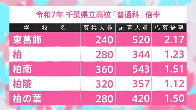 千葉県立高校入試2025 全日制普通科 志願倍率は東葛飾2.17倍、船橋1.92倍、薬園台1.68倍に【令和7年度高校受験】 TBSテレビ 2025年2月6日(木) 19:01 国内 学校別の一覧 東葛飾2.17倍、松戸六実1.62倍