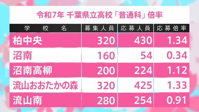 千葉県立高校入試2025 全日制普通科 志願倍率は東葛飾2.17倍、船橋1.92倍、薬園台1.68倍に【令和7年度高校受験】 TBSテレビ 2025年2月6日(木) 19:01 国内 学校別の一覧 柏中央1.34倍、流山おおたかの森1.33倍