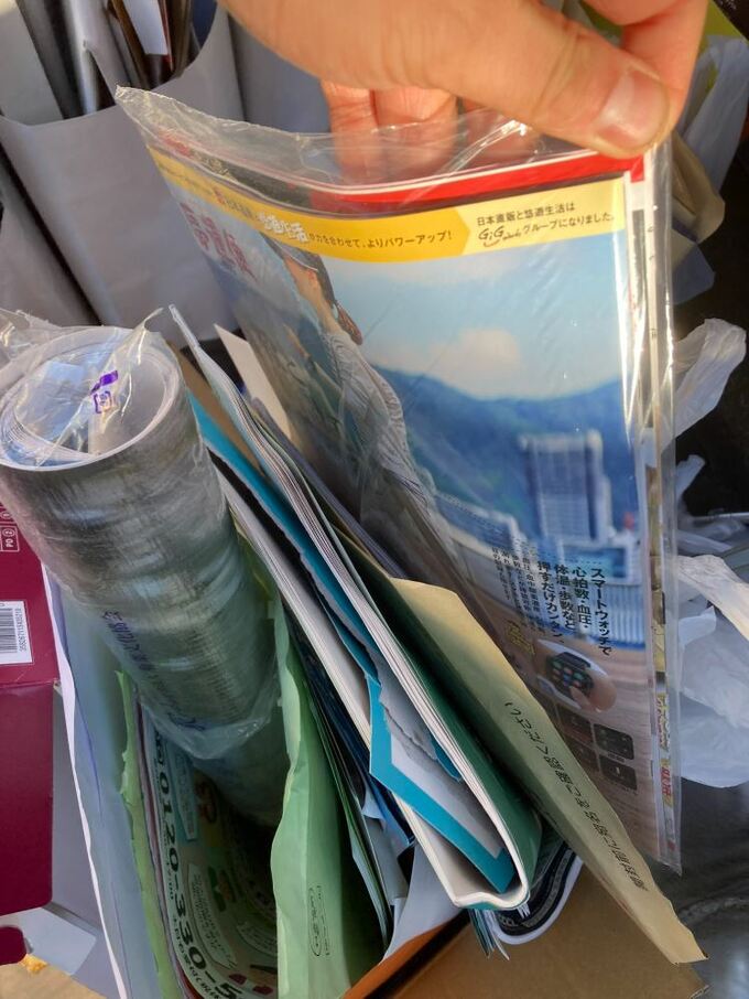 滝沢さんは暗に、雑誌やカタログなどを紙資源として出す際にはプラスチック製カバーを外して混入させないよう呼びかけているようです。