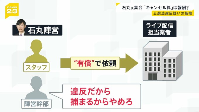 「(陣営幹部が)法律にひっかかるから、これはダメだと、キャンセルしろと言ったのは、間違いなく事実です」