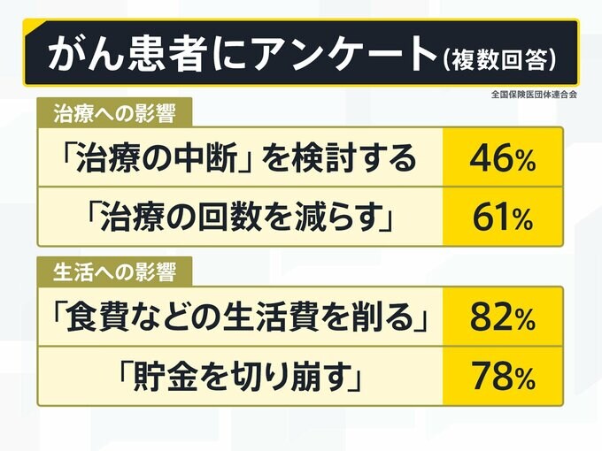 自己負担が増額された場合の影響について、がん患者の方にアンケートを取りました。(全国保険医団体連合会 調べ)