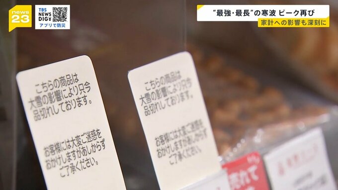 通常週3回の納品が大雪の影響で遅延。5日に納品される予定だった商品は、7日にまとめて入荷されることに…。人気商品の多くが欠品しているといいます。