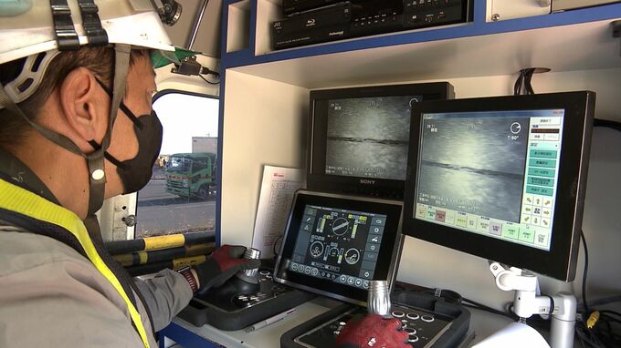 点検ではカメラが付いたロボットを遠隔で操作して下水道管の中をくまなく撮影し、5人の調査員が中の様子を確認しました。