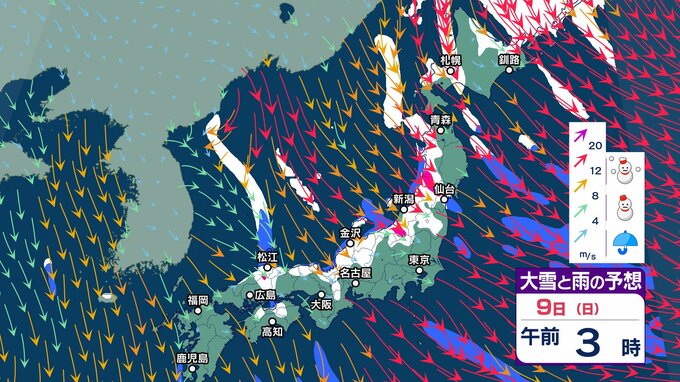 名古屋も積雪のおそれ 再び寒気が強まり雪のピーク 大雪や路面の凍結による交通障害に警戒を【大雪と雨と風のシミュレーション】 チューリップテレビ 2025年2月7日(金) 15:15 国内 暮らし・マネー 9日(日)大雪と雨と風のシミュレーション