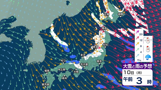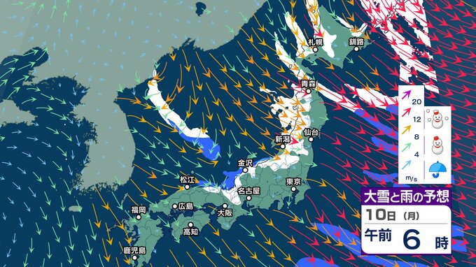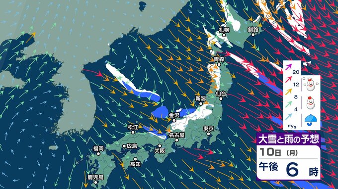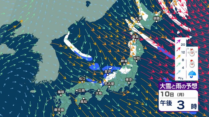 名古屋も積雪のおそれ 再び寒気が強まり雪のピーク 大雪や路面の凍結による交通障害に警戒を【大雪と雨と風のシミュレーション】 チューリップテレビ 2025年2月7日(金) 15:15 国内 暮らし・マネー 10日(月)雪と雨と風のシミュレーション