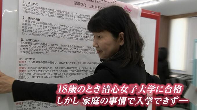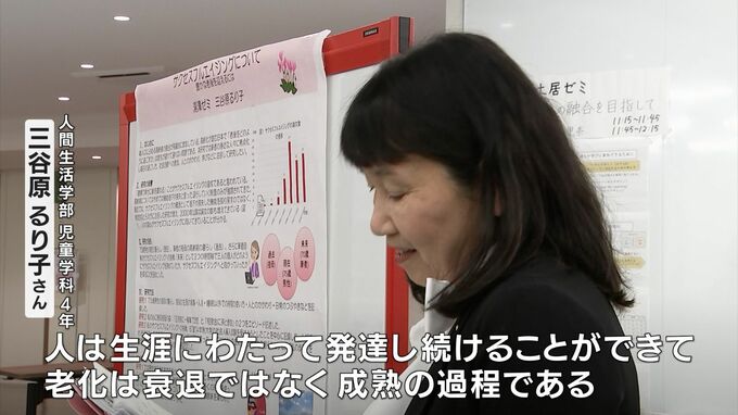 日頃の研究の成果を発表する学生の中にいたのは、70歳の三谷原るり子さんです。岡山市北区のノートルダム清心女子大学で卒業研究発表会が開かれました。