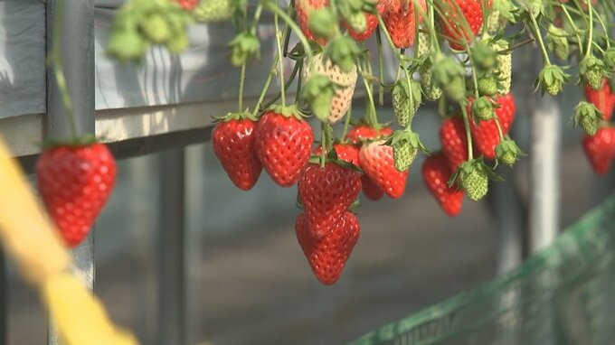 こちらでは3000㎡程の広さのハウスで章姫など8種類のイチゴを育てていますが…