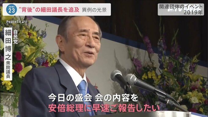 ■教団関連イベントで「安倍総理に報告」と発言 衆院議長を追及