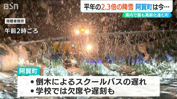 雪による倒木で道路がふさがれて小中学生が乗るスクールバスの運行が遅れ、学校では欠席や遅刻も相次いでいるということです。